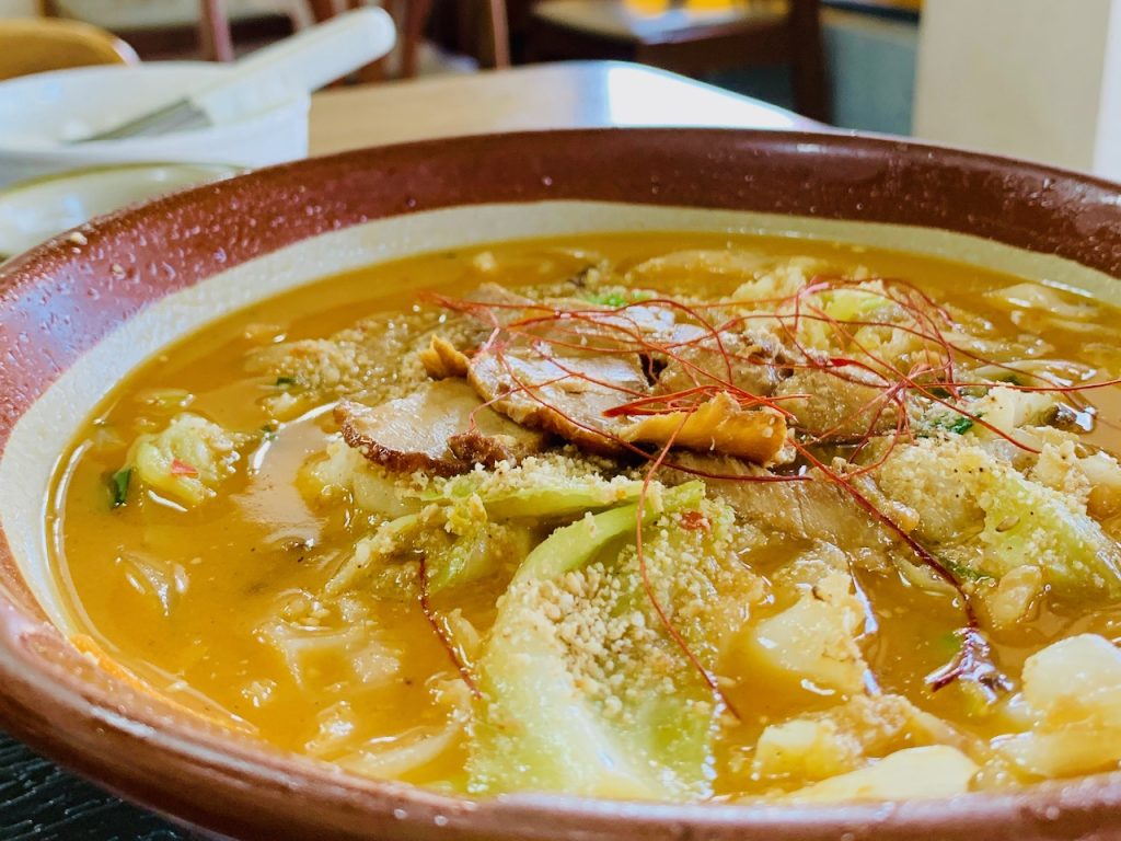 スープは魚介のダシが効いていて、コクはあるけれど重たすぎない味わい。野菜と一緒に食べ進めると、最後まで飽きずに楽しめます。