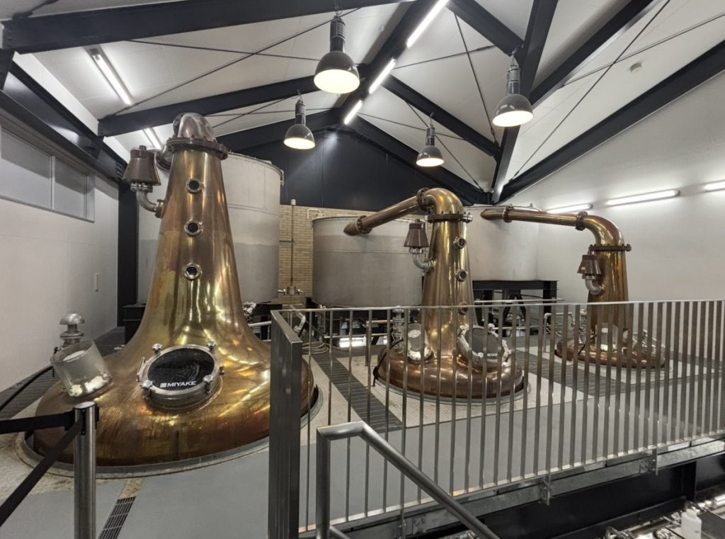 嘉之助蒸溜所のシンボルともいえる形状・角度が違う3基のポットチル。