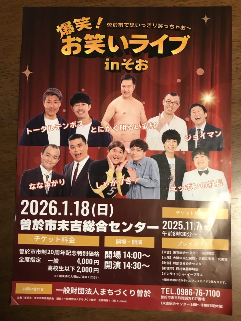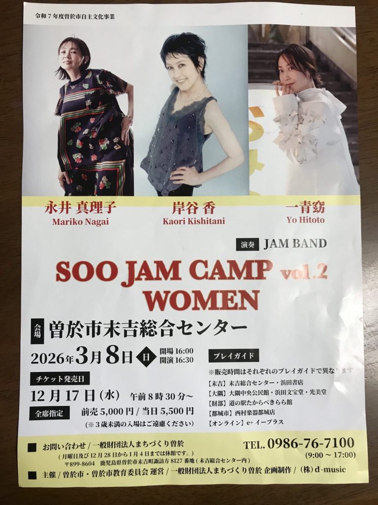 素敵な3人のライブが、2026年3月8日に曽於市末吉総合センターであります。