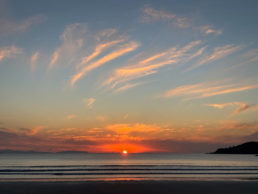 晴れた日には太陽がゆっくりと地平線の向こうへ沈んでいく光景が広がり、息をのむほどの美しさだそう。わたしが宿泊した日は、あいにく極寒で、時折雪が舞っていました。夕日が見れなくて無念だったので、スタッフに写真をいただきました。本当は、この夕日が拝めたはずなのに……(涙)