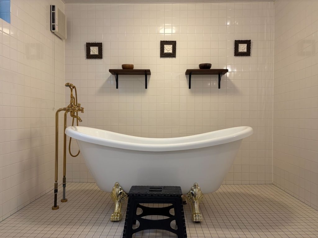 シャンプーやリンスなどの基本的なアメニティは、フロントで受け取ることができます(チェックインは、15時から)。さらに、「ドームテント+」に宿泊すると、入浴剤や日本のヘアケア家電ブランド「KINUJO」のアイテムが使える、限定アメニティも付いてきます。ひとり時間をより心地よくしてくれる、ちょっと特別なサービスが用意されていました。