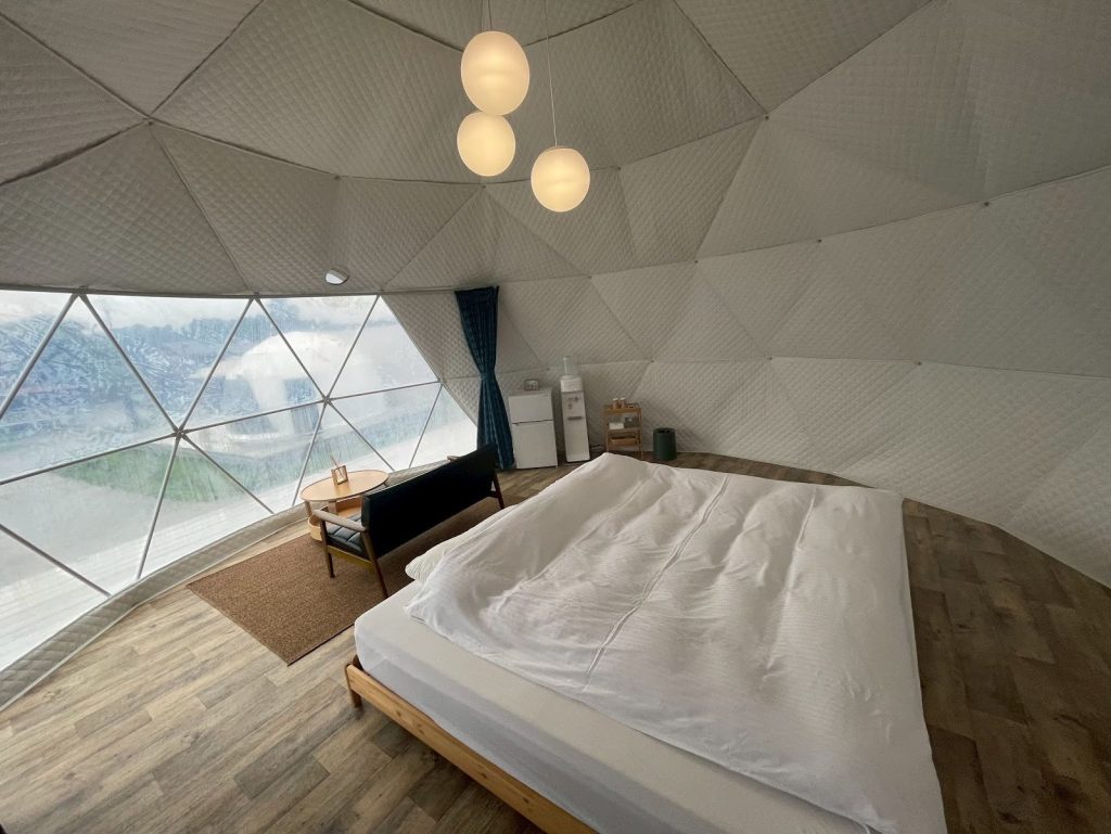 ※泊まれるドームは、予約状況によって変わります。「ドームテント+」以外の宿泊の場合、KINUJOの貸し出しはないので、ご了承ください。