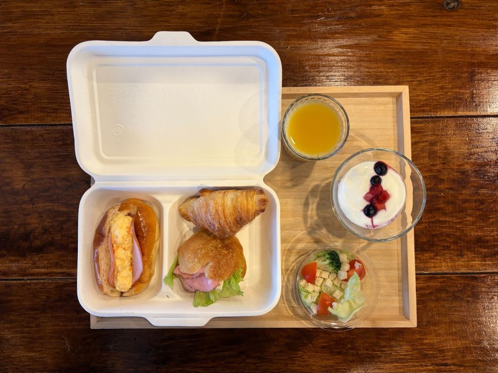 朝食は、阿久根市内のパン屋さんから取り寄せた、3種類のモーニングブレッドにサラダ、ヨーグルトがセットに。なかでもクロワッサンは、さっくさくで思わず笑みがこぼれる美味しさでした。普段は朝食を取らないわたしも、この日はペロリ。朝の静かな時間と相まって、贅沢なひとときを味わえました。