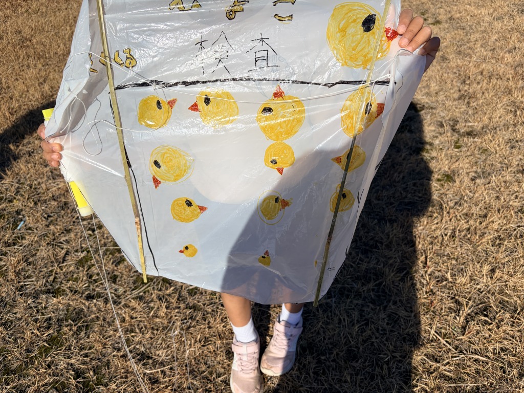 ちなみに凧は自分たちで手作り。好きな絵を書きます。