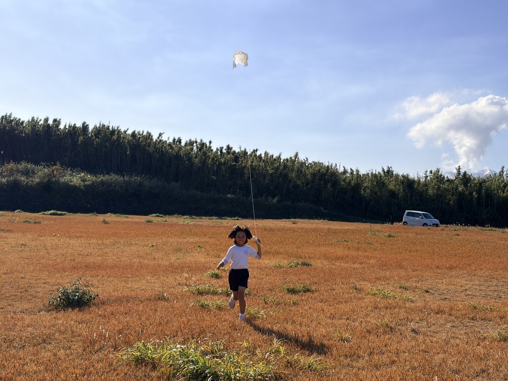 凧上げのような昔ながらの遊びを、学校行事として続けられるのは、自由に走れる場所があり、周囲に引っかかるものが少ない竹島の環境があってこそだと思います。