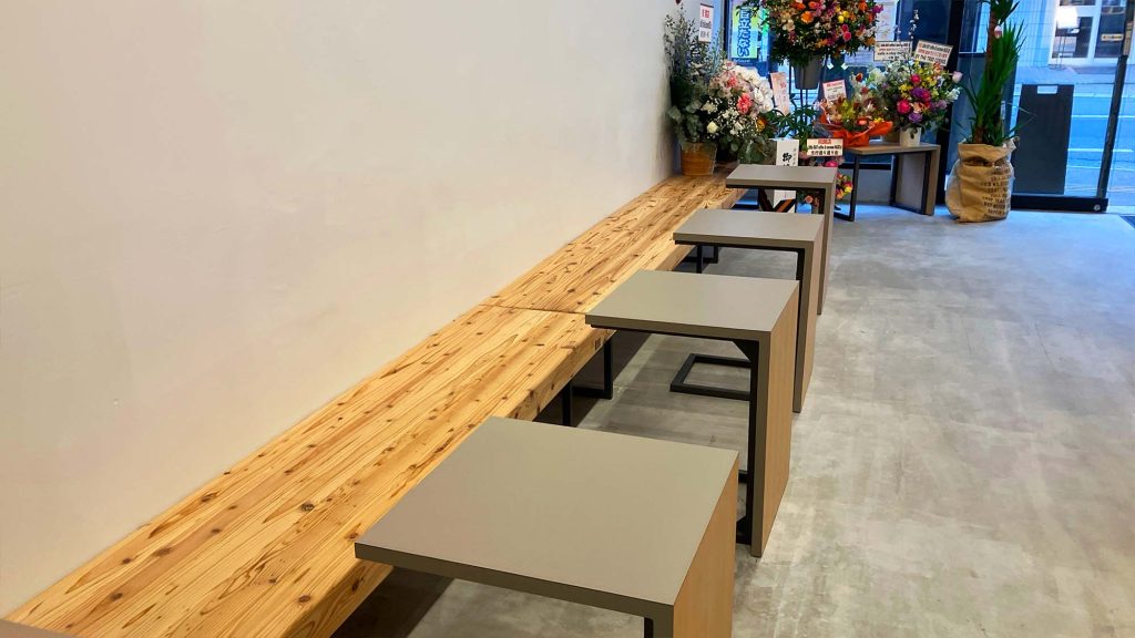 スタイリッシュな店内には2〜4人用のテーブル席が6つと、壁際の席が4つあります。