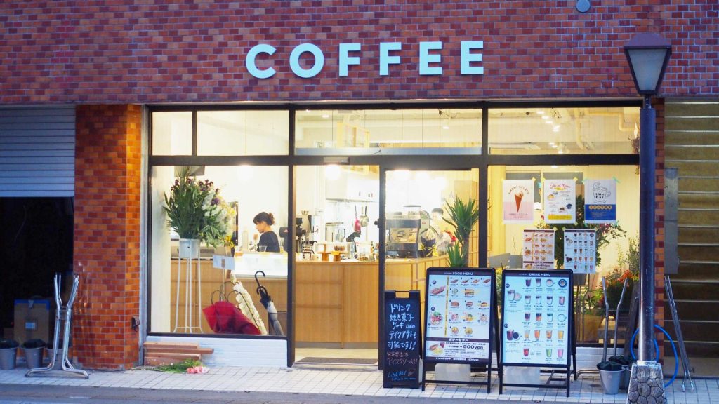 赤レンガの外装に、入口の”COFFEE”が目印です。