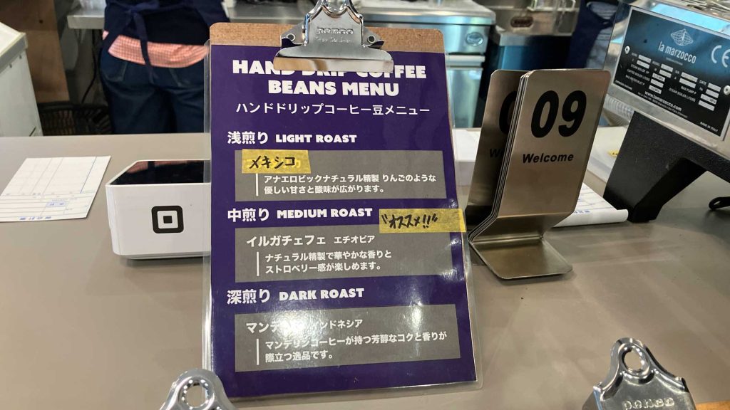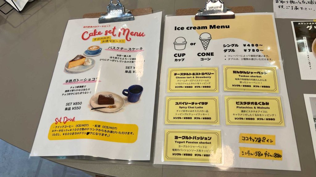 ドリンクはハンドドリップのコーヒー、カフェラテ、紅茶などの他に、たんかんジュースやスムージーなど幅広いラインナップになっています。