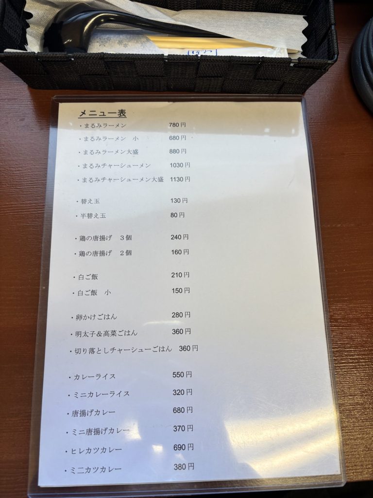 ラーメンは基本的に「まるみラーメン」か「まるみチャーシューメン」のみ。