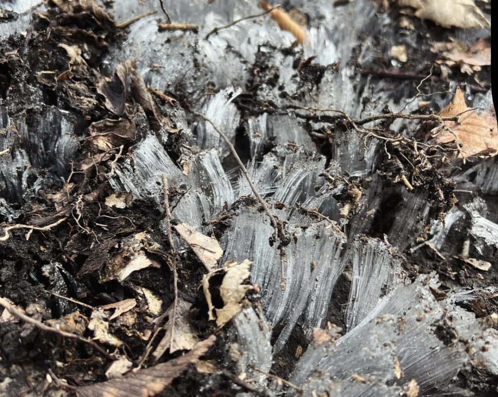 子どものころは、ただただザクザクの音が面白くて踏みつけていましたが大人になると、氷の層の均一さや並びの美しさに興味を持っていかれます。