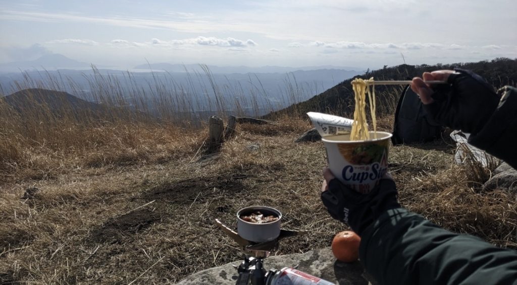 特別な具材が入っているわけでも、凝った味でもない。それなのに、山の景色と一緒に食べるだけで、いつものカップラーメンが「ちゃんとしたごはん」になる。