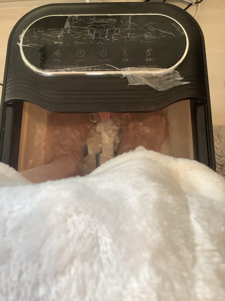 続いて、椿油を落としたフットバスで足先からじんわりと温めていきます。足裏を刺激されるうちに、体の奥からポカポカしてくる感覚。
