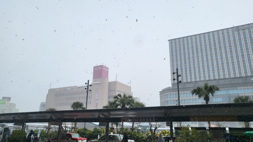 イベント当日は、南国鹿児島でも雪が降る寒波到来。
