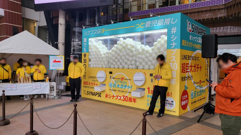 「シナプッシュ超巨大ガチャ!inAMU広場」は名前の通り、鹿児島中央駅のAMU広場で行われました。