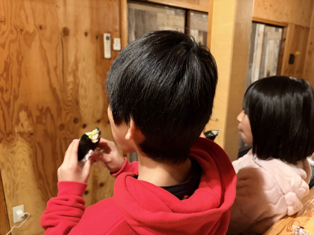 そして夜になったら、南南東を向いて無言で恵方巻を食べて節分は終了です。
