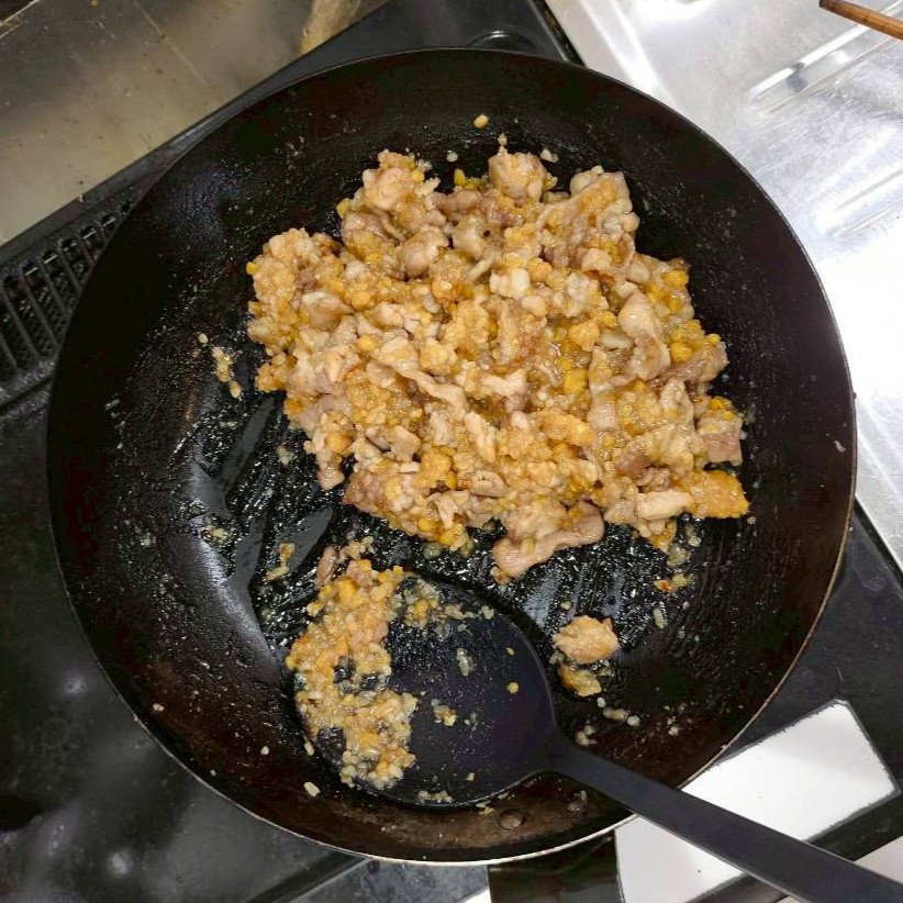 ここでのポイントは、混ぜすぎないことと、炒めすぎないこと。