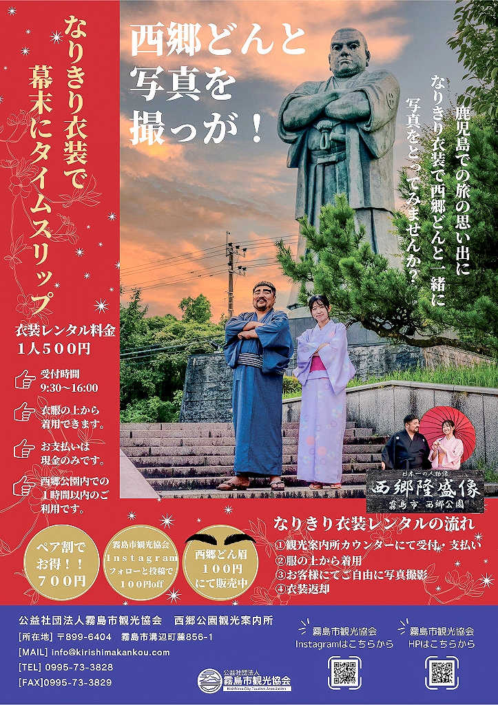 鹿児島での衣装レンタルと言えば冠婚葬祭用のところがほとんどですが、観光需要を取り込んでいく考えであれば、こういった安価で利用できる衣装レンタルサービスも必要になってくるのではないでしょうか?