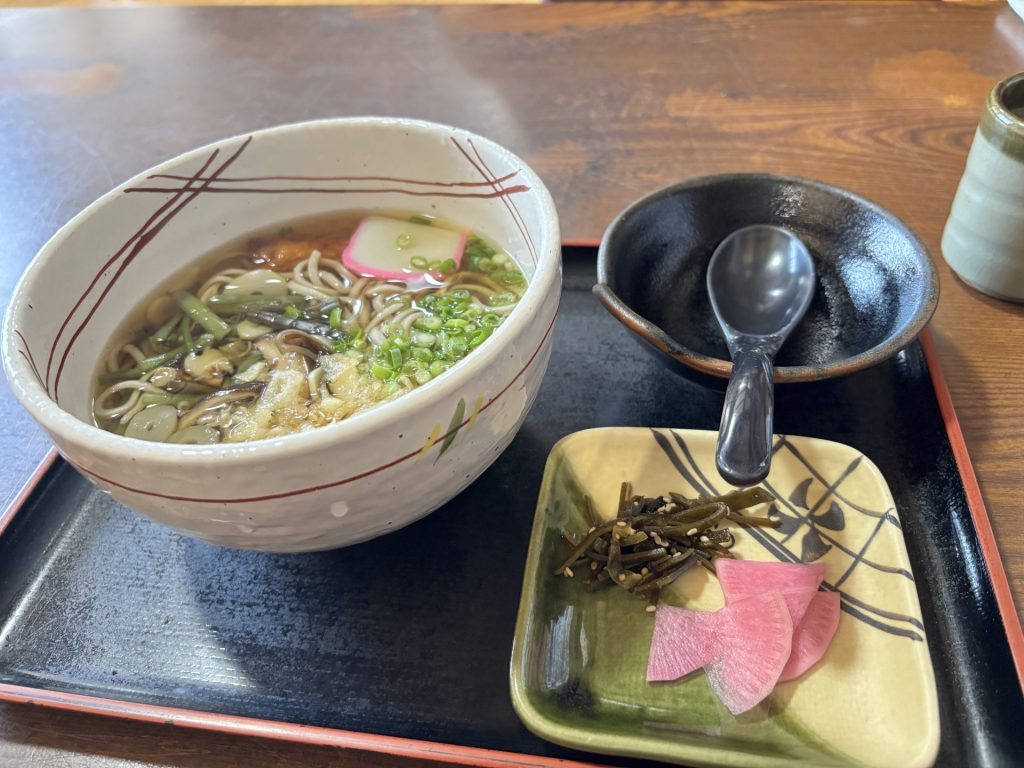 ちなみに本日は家族三人で足を運んでおり、妻が注文した山菜蕎麦。