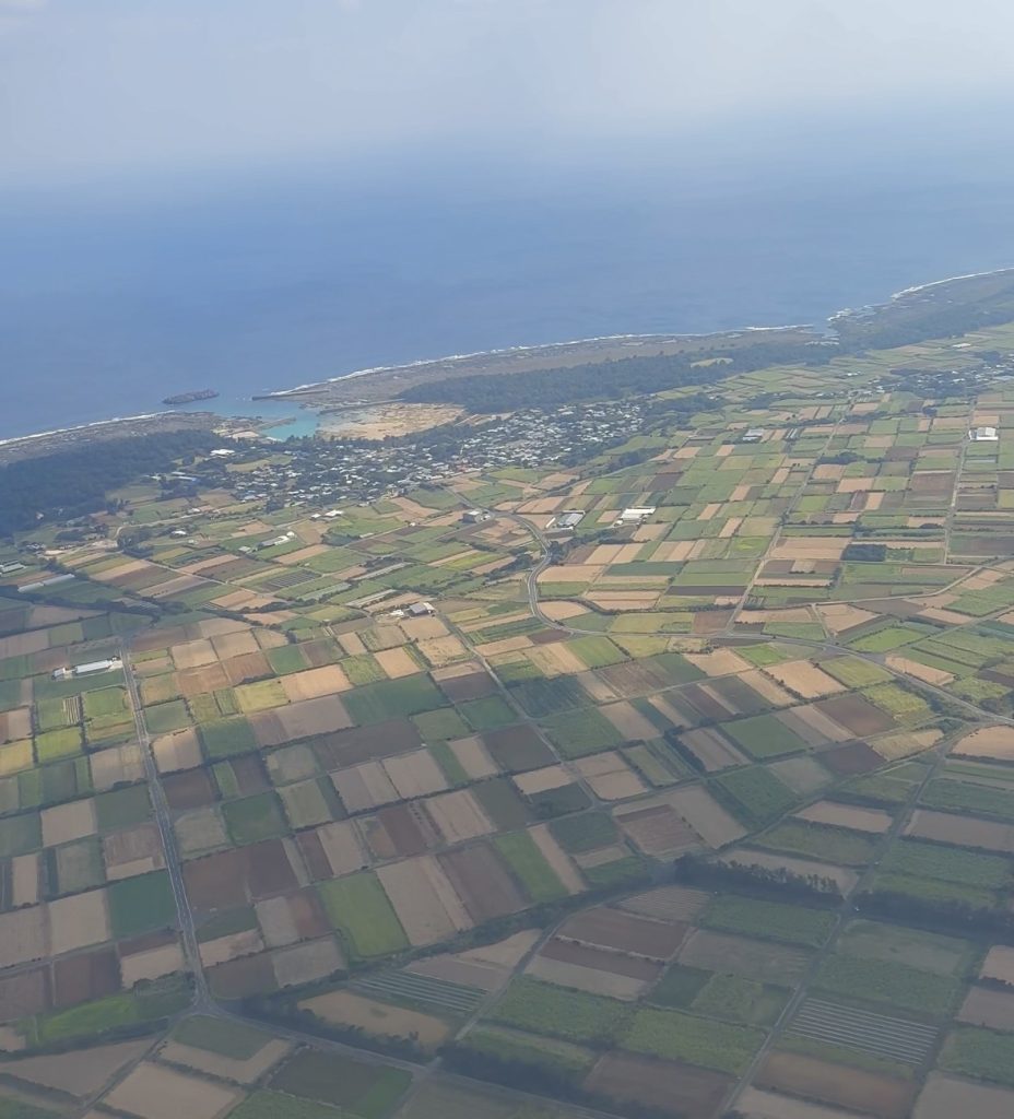 島は緑と茶色の畑で埋め尽くされています。