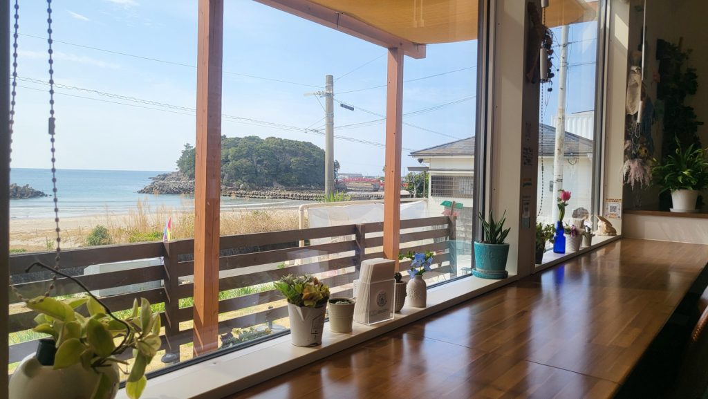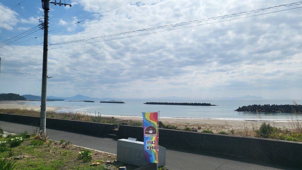 待っている間に、海側を見ると、水平線が綺麗に見えています。