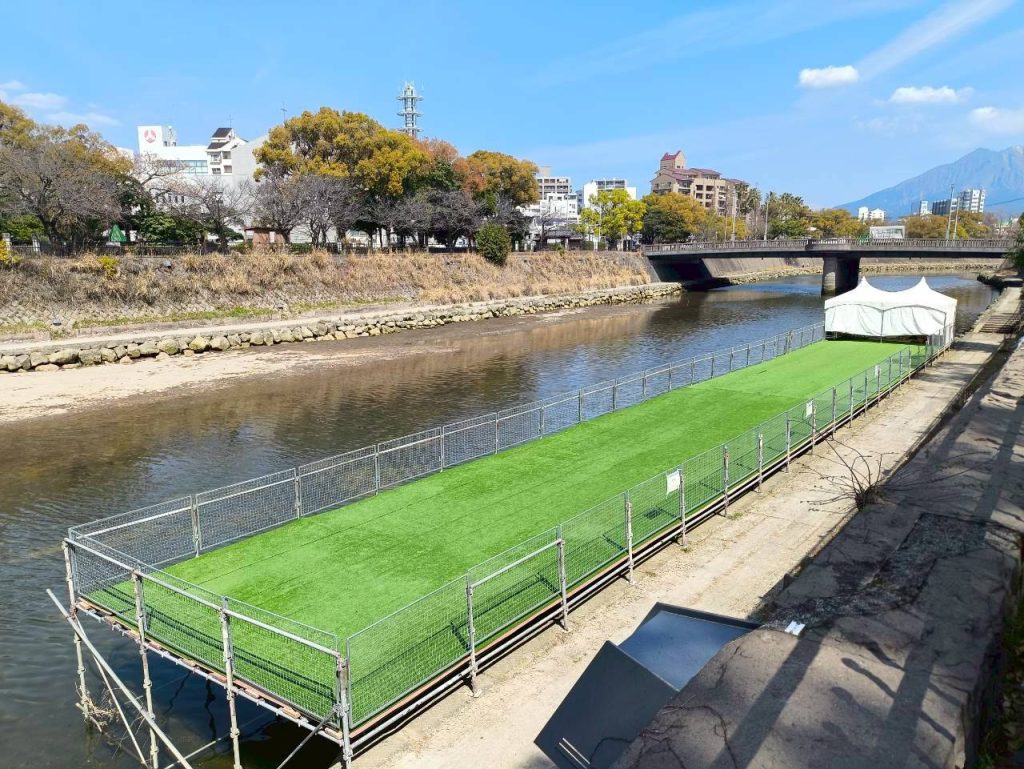 甲突川のステップアッププロジェクトとして、川床が有料観覧席になるそうです。
