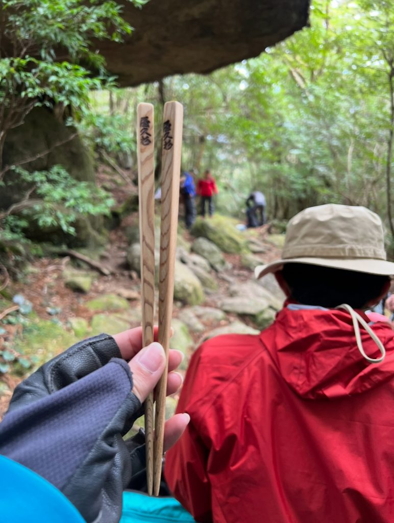 お箸は自分で作った屋久杉箸です!(ゴミは必ず持ち帰りましょう。自然をみんなで守る当然のマナーです)