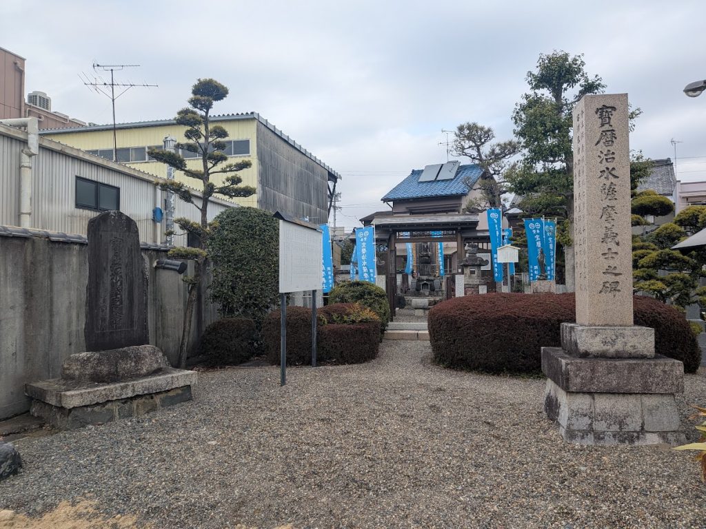 鹿児島市でも、平田靱負の屋敷跡が平田公園として整備されていたり、薩摩義士を顕彰する碑が建てられたりしています。