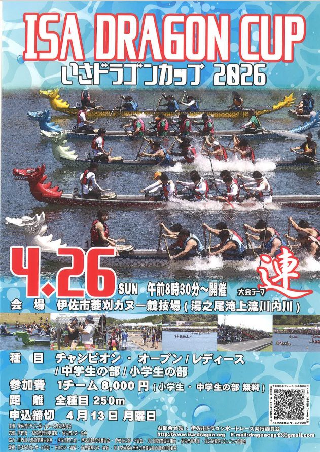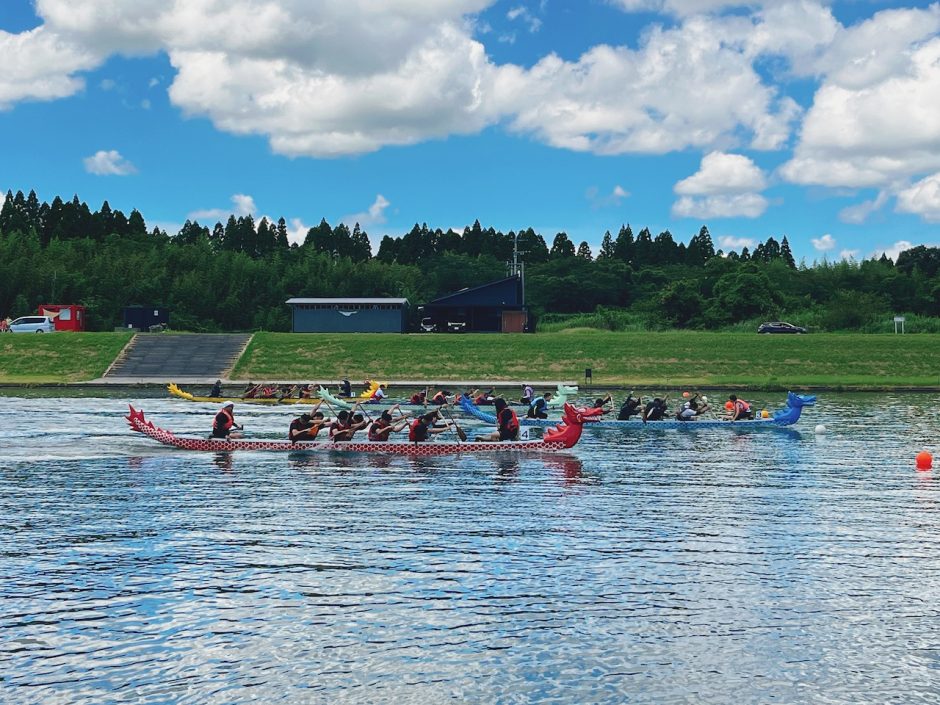 いさドラゴンカップは、チームで息を合わせてボートを漕ぐ「ドラゴンボートレース」の大会。