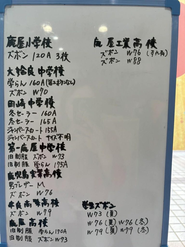 替えを必要とする人は、該当する学校の制服を探し、自分に合うサイズを確認します。