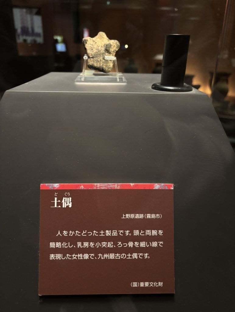上野原遺跡で見つかった土偶は、縄文時代早期に属する九州最古級のものです。後の時代に作られた装飾的で力強い土偶とは異なり、その姿は驚くほど素朴で抽象的です。